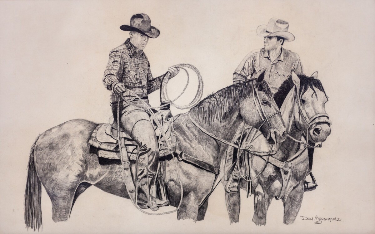 Unico schizzo a carboncino "Two Ropers" su carta di Ron Merrfield
