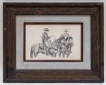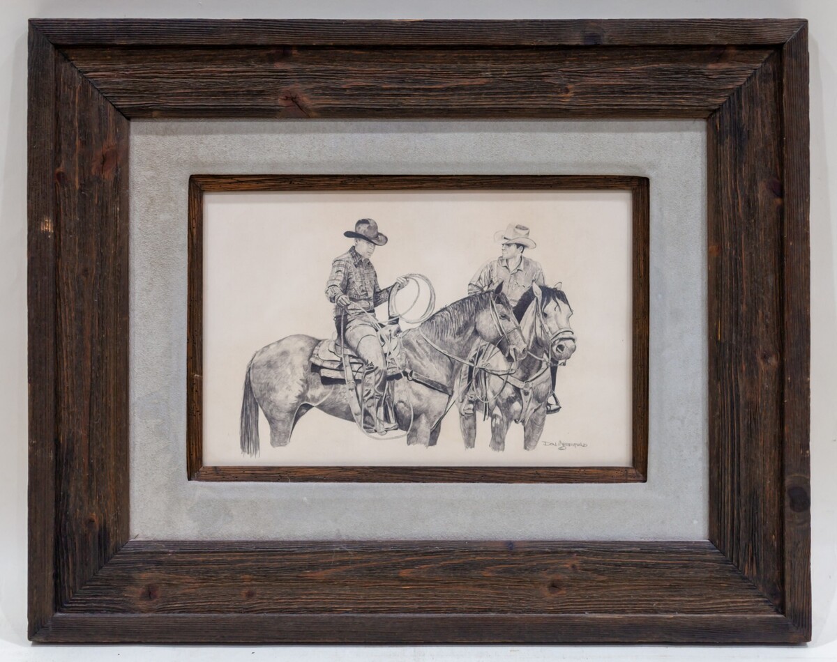 Schizzo a matita originale "Two Ropers" di Don Merrifield '79 Incorniciato 18,75 x 23,5"
