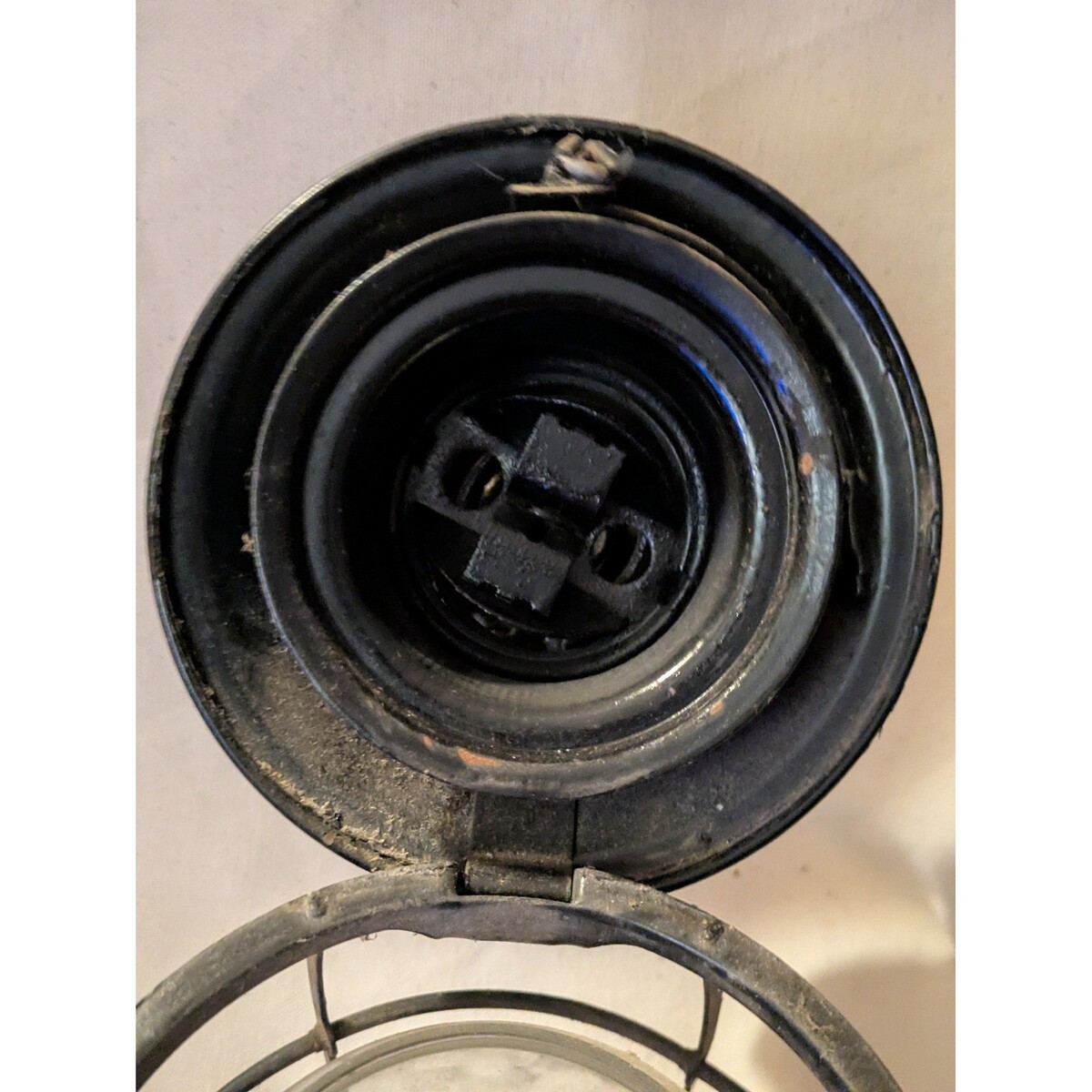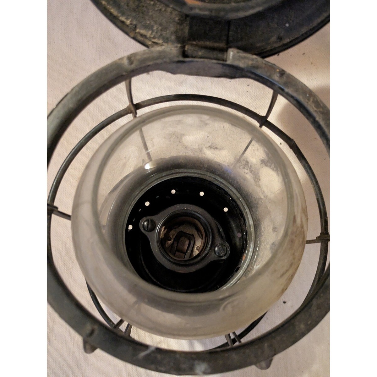 Illuminant votre espace avec un charme rustique, cette lanterne electrique vintage de Dressed Forged Co. a Arlington estampillee WT Co pour Washington Terminal Company. murmure des histoires d?epoques revolues. Son cadre en metal robuste, embrasse par le temps, accueille un globe en verre transparent, pret a projeter une lueur chaleureuse et invitante. Imaginez cette piece ajoutant du caractere a votre bureau, a votre coin-detente confortable ou meme comme accent decoratif unique pour un evenement a theme retro ou un patio exterieur rustique.