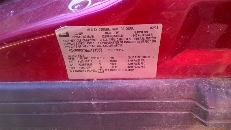 SRX 04-09 Rear Axle; RWD, 6 speed, (opt MYB), L.