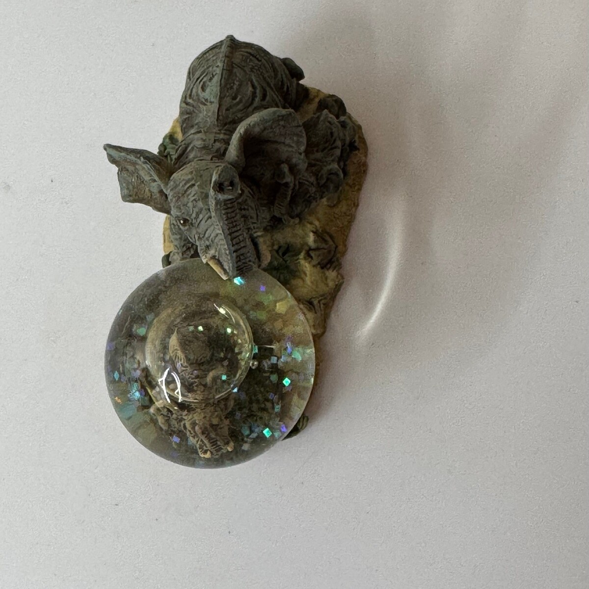Measurements: ? Height: 2 in ? Width: 1.5 in ? Length 4 in Type: Snow Globe Occasion: All Occasions Material: Glass, Plastic Department: Adults Keywords: elephant figurine, glitter globe, family of elephants, animal decor, desk accessory, shelf sitter, whimsical, charming, tabletop, keepsake, gift idea, resin sculpture