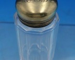 Lovely English sterling silver and glass dresser jar with vermeil top (all goldwashed) from London, England 1896. This piece measures 3 5/8" x 1 1/2". It is monogrammed on top of the lid (monos vary), and is in good vintage condition. Wonderful!