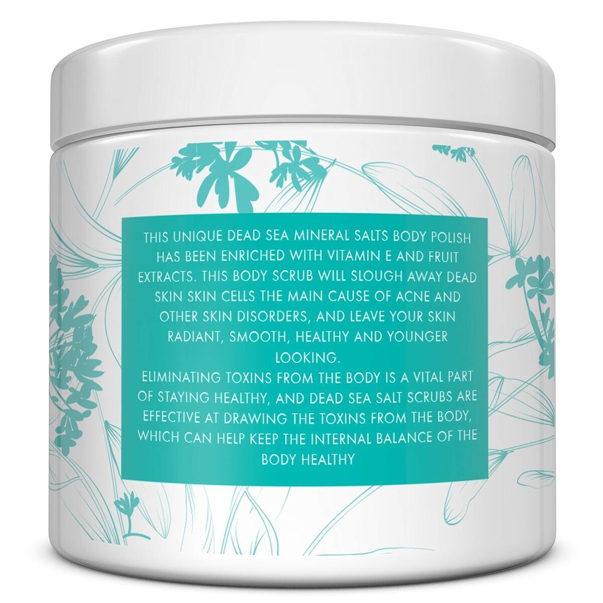 Esna Organics Dead Sea Salt Body Polish is a luxurious 16oz scrub infused with the mineral-rich essence of the Dead Sea, known for its therapeutic properties and deep cleansing benefits. This unique body polish combines pure Dead Sea salts with nourishing Vitamin E and an array of natural fruit extracts, working synergistically to exfoliate away dead skin cells and reveal fresh, radiant skin underneath. The gentle but effective formulation targets dry, rough patches and helps diminish the appearance of skin disorders like acne, making it an essential addition to your skincare routine.