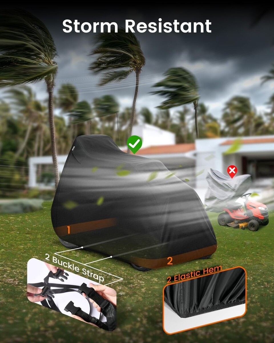 All-Weather Defense: Storm rolling in? Sunny day? Surprise hail? No problem. With double-stitched seams, windproof straps, and UV protection, this cover is ready for "mower Olympics," keeping your mower dry, clean, and sharp