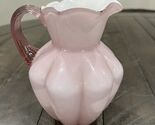 - Fenton Pink Rose Overlay Cased Glass Pitcher w/ Fern Pattern With Sticker