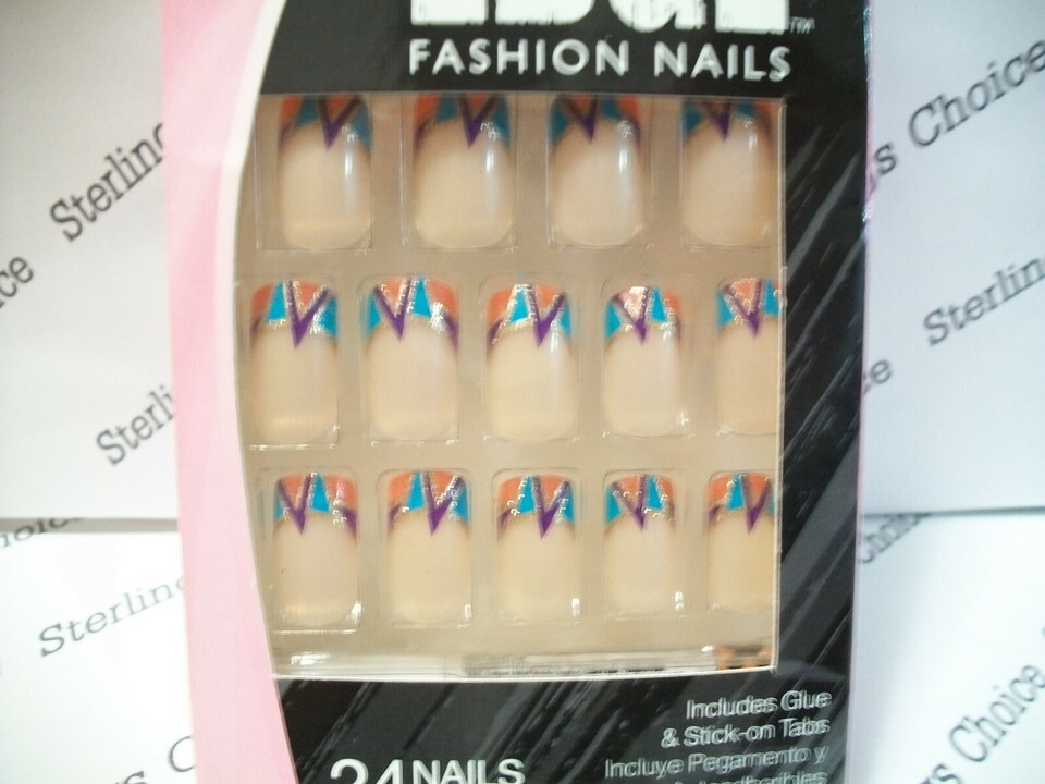 This listing is for one (1) Fing'rs Edge Fashion Nails #31114 Abstract Colored Tips Medium (Bl,Pur,Or).