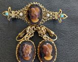 Florenza Marron Cameo Barre Broche Boucles D'Oreilles Faux Perle Strass Or Ton