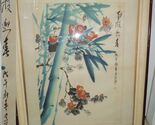 - Framed Chinese Watercolor Painting 32"x24.5" bamboo flowers birds 23.5"x16.5"