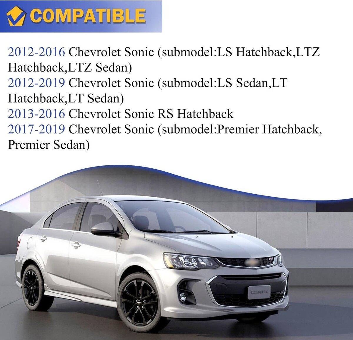 For 2012-2016 Chevrolet Sonic (submodel:LS Hatchback,LTZ Hatchback,LTZ Sedan)?2012-2019 Chevrolet Sonic (submodel:LS Sedan,LT Hatchback,LT Sedan)?2013-2016 Chevrolet Sonic RS Hatchback?2017-2019 Chevrolet Sonic (submodel:Premier Hatchback,Premier Sedan). Please check the second picture to confirm coolant reservoir whether compatible with your vehicles.