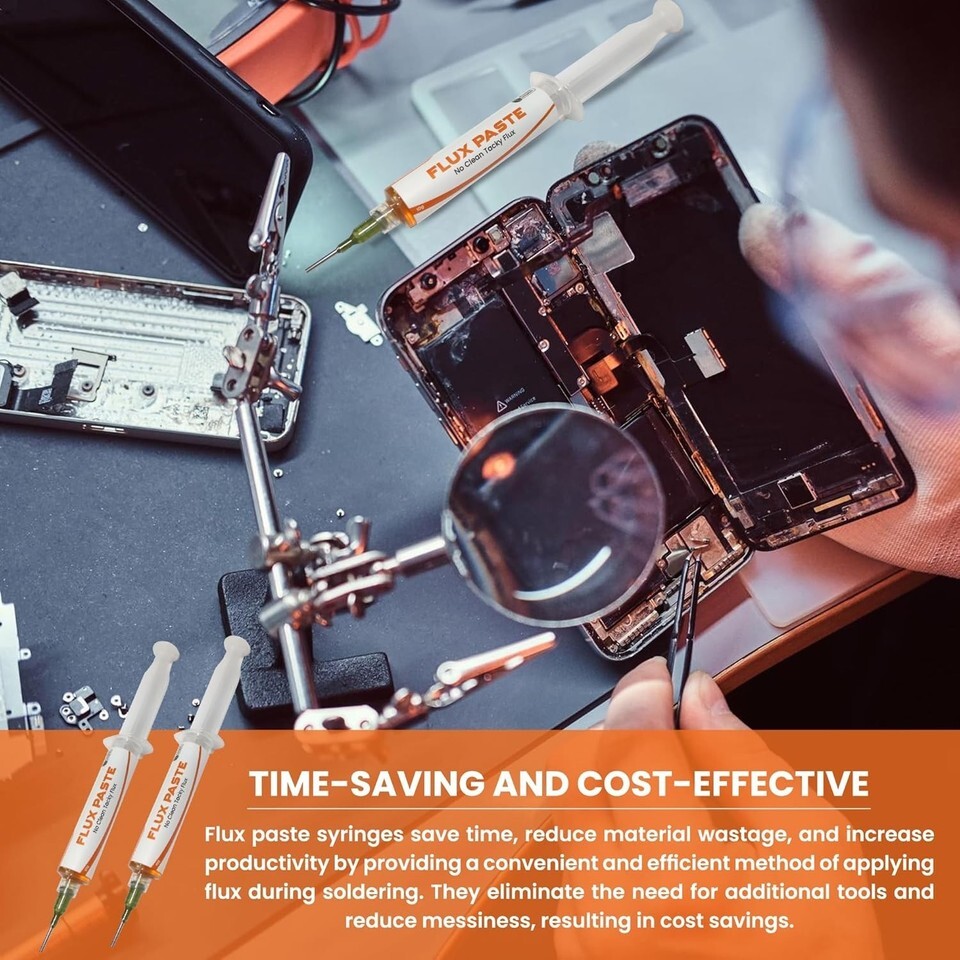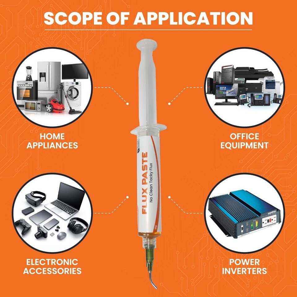 : The package includes 1 syringe of soldering high quality rosin paste flux, 10 grams net weight. Excellent Immersion, wettability, chemical and technical properties. Thus, Enough quantity for your use. Strong soldering and welding power resulting strong low residual joints.