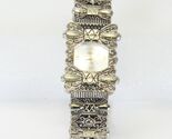 Vintage Ladies Geneva Elite Quartz Silver Tone Textured Hinged Bracelet Watch