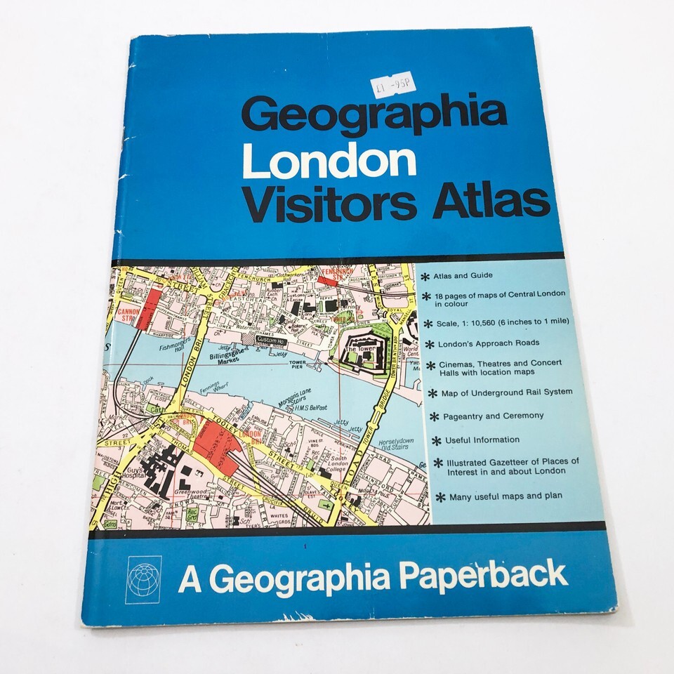 vintage, published around 1981-1982 Publisher Geographia Ltd "Geographia London visitors Atlas" 48 pages Approx 8.5 x 11 x 0.5 inches Paperback, stapled binding Color maps SKU AL-01-04-25-019 Acceptable to Good condition: Minor wear and scuff marks on the front and back. Wear on the corners and edges. Some markings on the maps. see the pictures Yes, we combine orders for shipping whenever possible. If did not combine the shipping on your order correctly when we combine the items and check the shipping, if it is less than the shipping charges that you paid, we will issue you a refund for the difference.