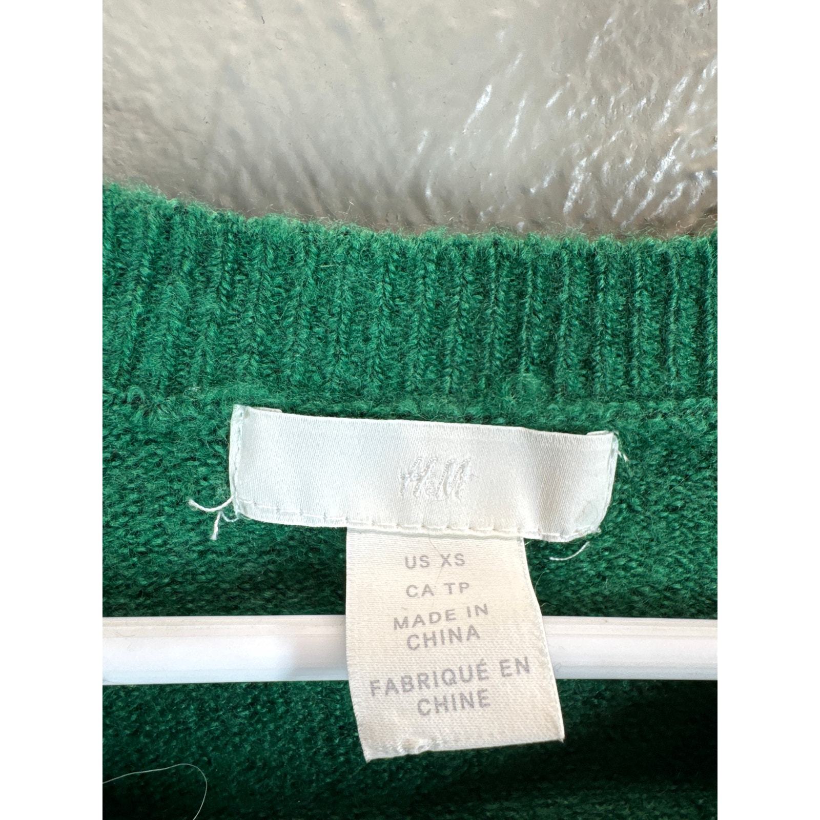 - H&M Crewneck Pullover Green Wool Blend Knit Sweater Womens Size XS
