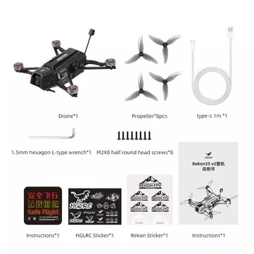 - HGLRC Rekon35 V2 HD O4 / Analog 3.5 In 2S Long Range GPS FPV Racing Drone set