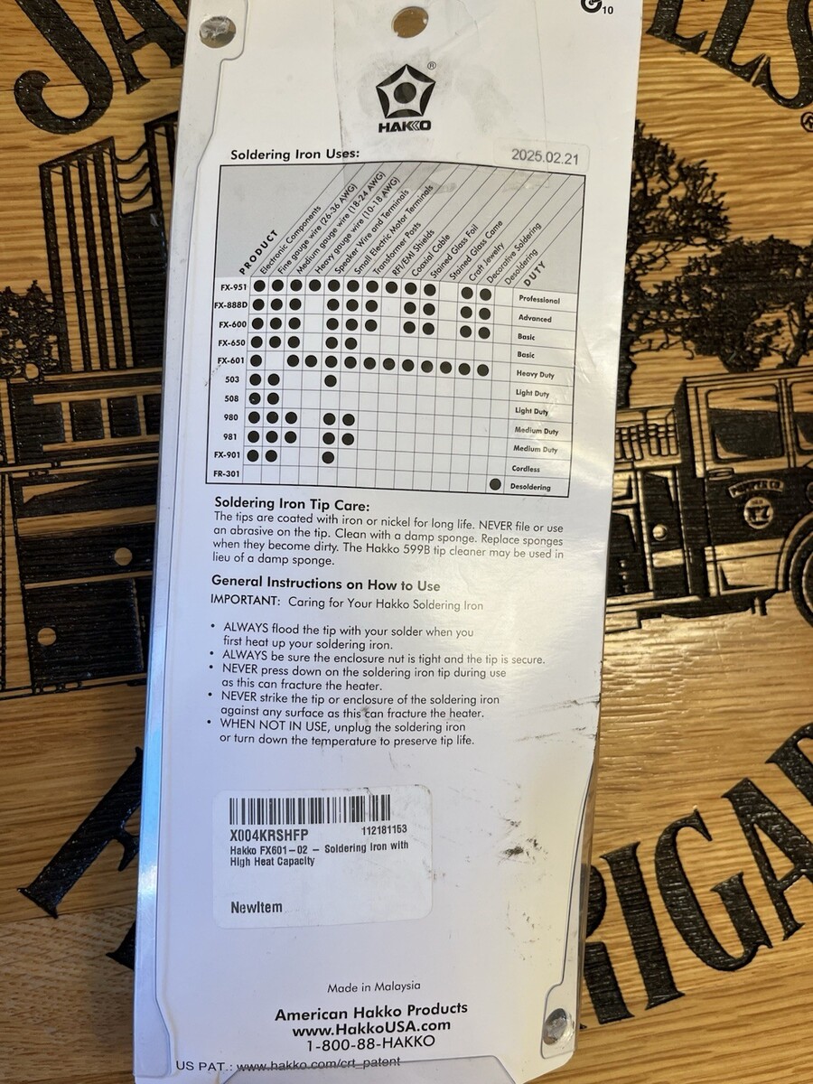 - Hakko FX-601 Adjustable Temperature Soldering Iron w/ 67W Core - 240 to 540°C