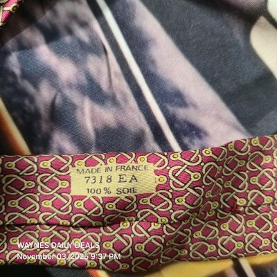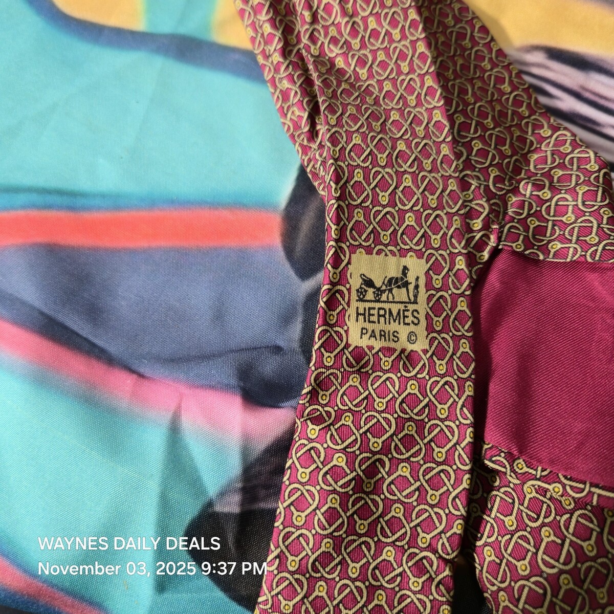 - Hermès Paris 7318 EA 100% Silk Tie Red & Gold Geometric Pattern Made in France