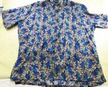 - Hilo Hattie Mens Hawaiian Shirt 2XL Blue & Gold Leaf Print Short Sleeve 100% Cot