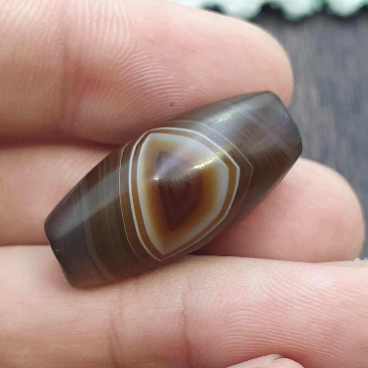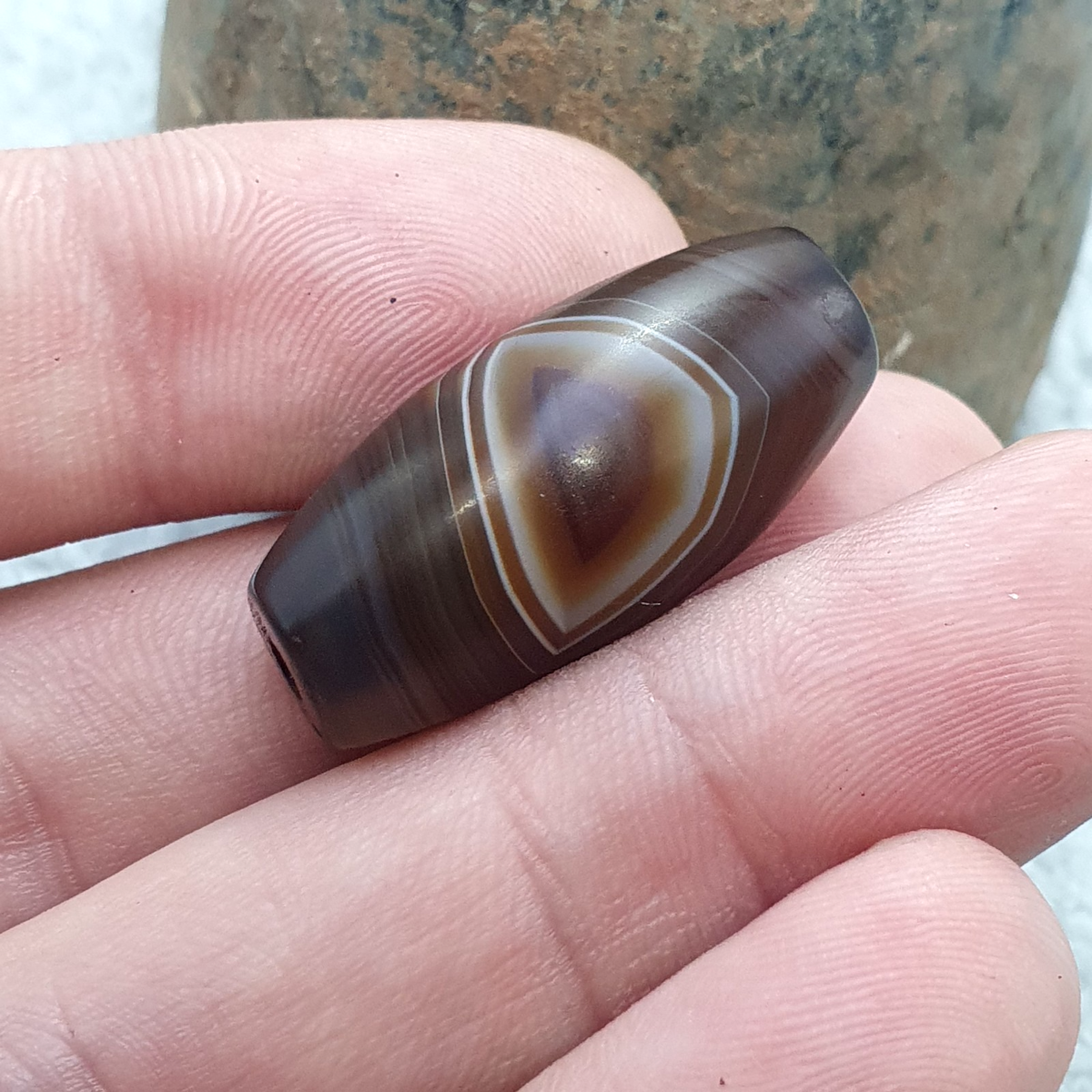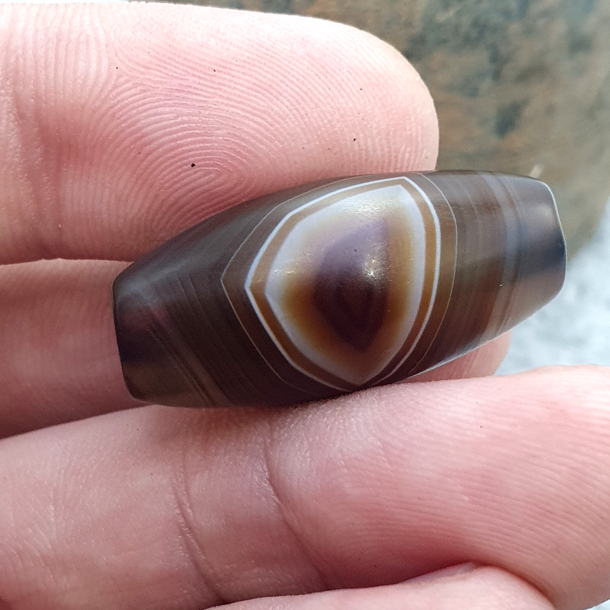 Himalayan Indo Tibetan rare Patterns pure Natural Eyes Banded Agate Amulet, Bead Pendant
