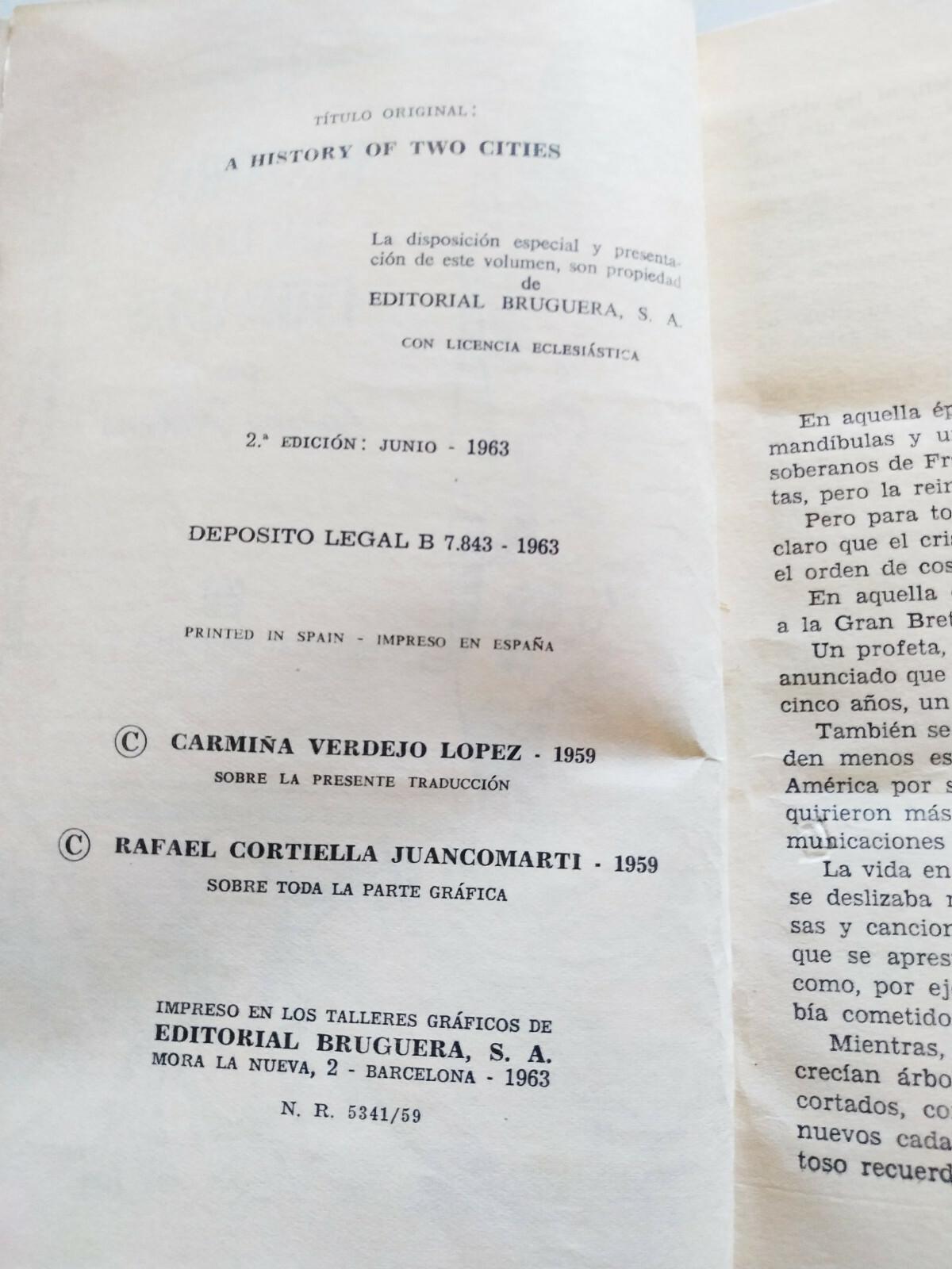 historia de dos Cities CARLOS Dickens 1963 Bruguera - Spanish BOOK