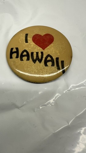 The "I Love Hawaii VTG 2? Button" is a vintage 2-inch pinback button featuring a declaration of love for Hawaii. The button likely showcases a design related to Hawaii, making it a collectible item for enthusiasts of Hawaiian culture or travel memorabilia. While the product is not handmade, its nostalgic charm and message of affection for Hawaii make it a desirable addition to a collection of pinback buttons or as a memento of the tropical state.