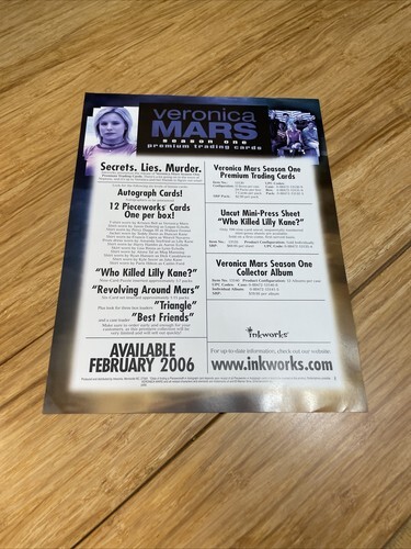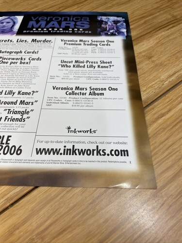 Inkworks 2005 Veronica Mars Trading Card Promotional Poster KG JD