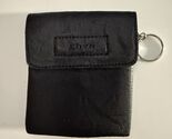 JCPenney black faux leather coin purse with keychain, originally given as a Susan G. Komen Race for the Cure promotional gift. This compact wallet features a secure Velcro flap, interior pocket for coins, cash or ID, side key ring, and belt-loop style strap on the back. New old stock with ?Made in China? tag and original JCPenney breast cancer awareness insert, perfect for everyday use, gifting, or collectors of JCPenney and Komen items.