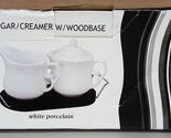 White Porcelain Sugar Creamer Bowl with Wood Base Measures about 3.5" high Item is new, un-used old stock in open package therefore packaging may show signs of age and storage.