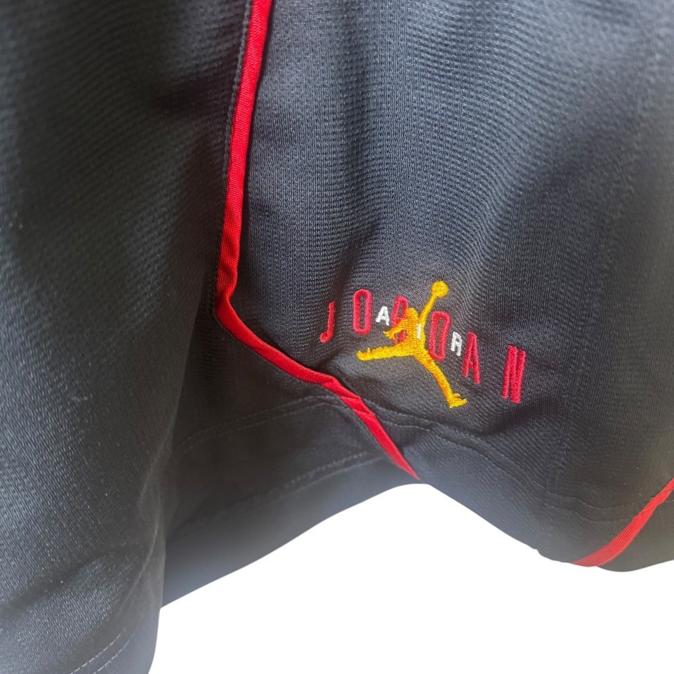 Keywords: Jordan shorts, basketball shorts, mens athletic shorts, black red shorts, embroidered logo, training shorts, athletic wear, mens activewear, gym shorts, sports shorts, performance shorts, Air Jordan, Mesh Shorts