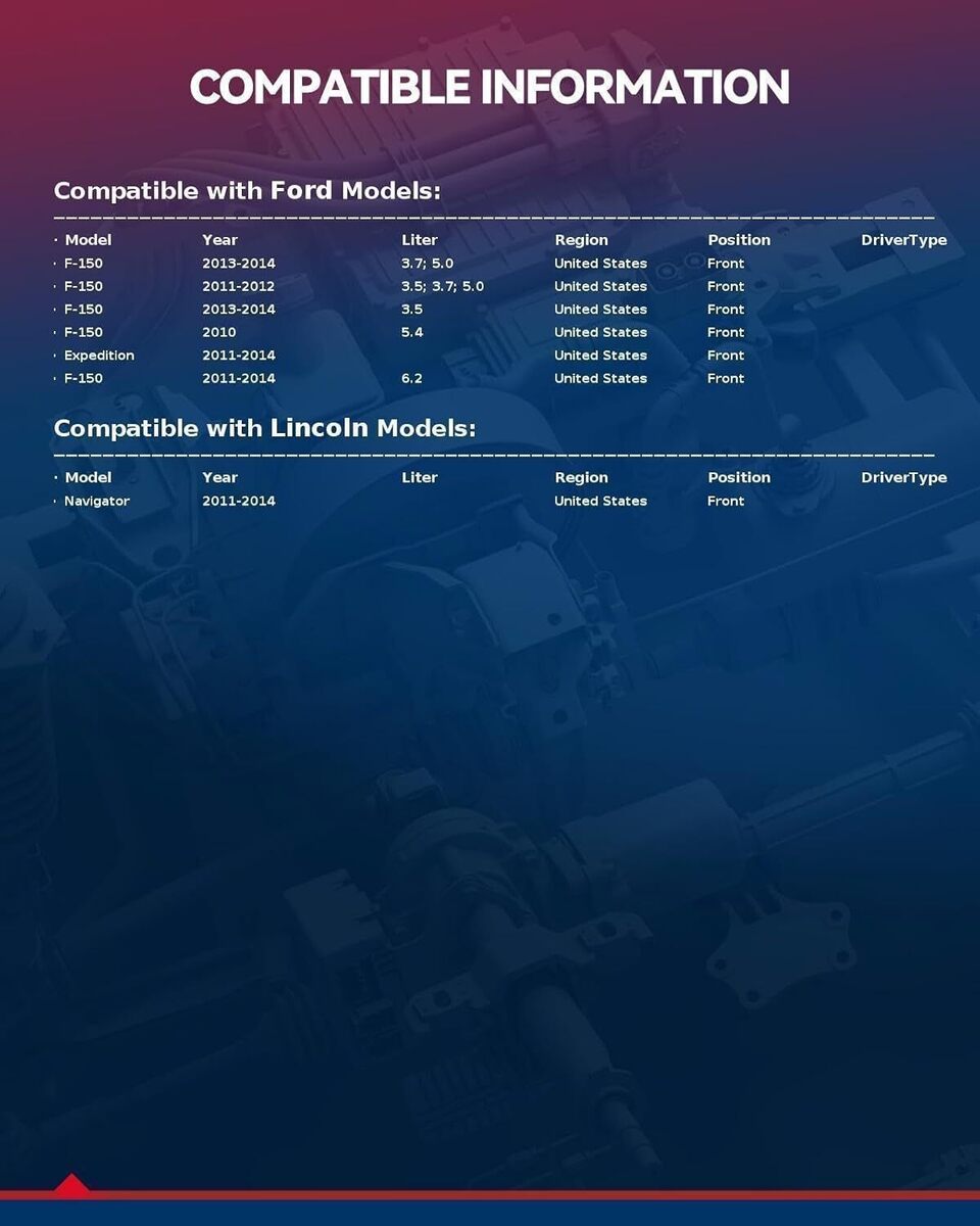 Specification Parameters: Hub Specifications: Position: Front Left and Right | Lugs: 6 Bolts | Drive Type: 4WD / 4x4 | ABS Type: Sensor Wire | Flange Type: 4-Bolt Square. Exact Replacement: KAX Wheel Hub assembly Compatible with 2011-2014 F150, 2011-2014 Expedition, 2011-2014 Navigator. High Quality: Our wheel hub bearing assembly insists on providing excellent quality and offers customers a great and safe driving experience. With a high-frequency quenching process, the surface of the wheel bearing is harder and more wear-resistant. Quad lip seal design inhibits rust and pollution by keeping moisture and other contaminants out, which prevents vibration and noise. And Nuts are chamfered to prevent loosening. Easy to Install: KAX wheel hub bearing is designed for fast, hassle-free installation, and is fully compatible as a replacement for factory parts. Fit perfectly, the installation was straightforward. Quality Guarantee: Providing the best customer experience is our primary goal. KAX wheel hub and bearing assembly provide 12 months warranty. If the part ever fails on your car, please feel free to contact us.
