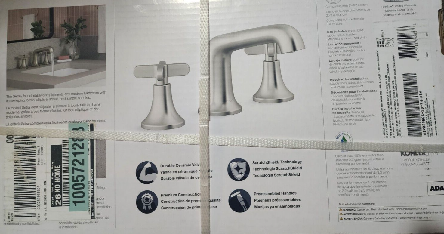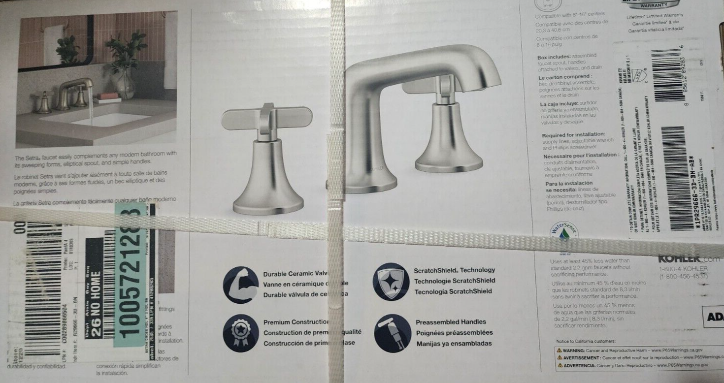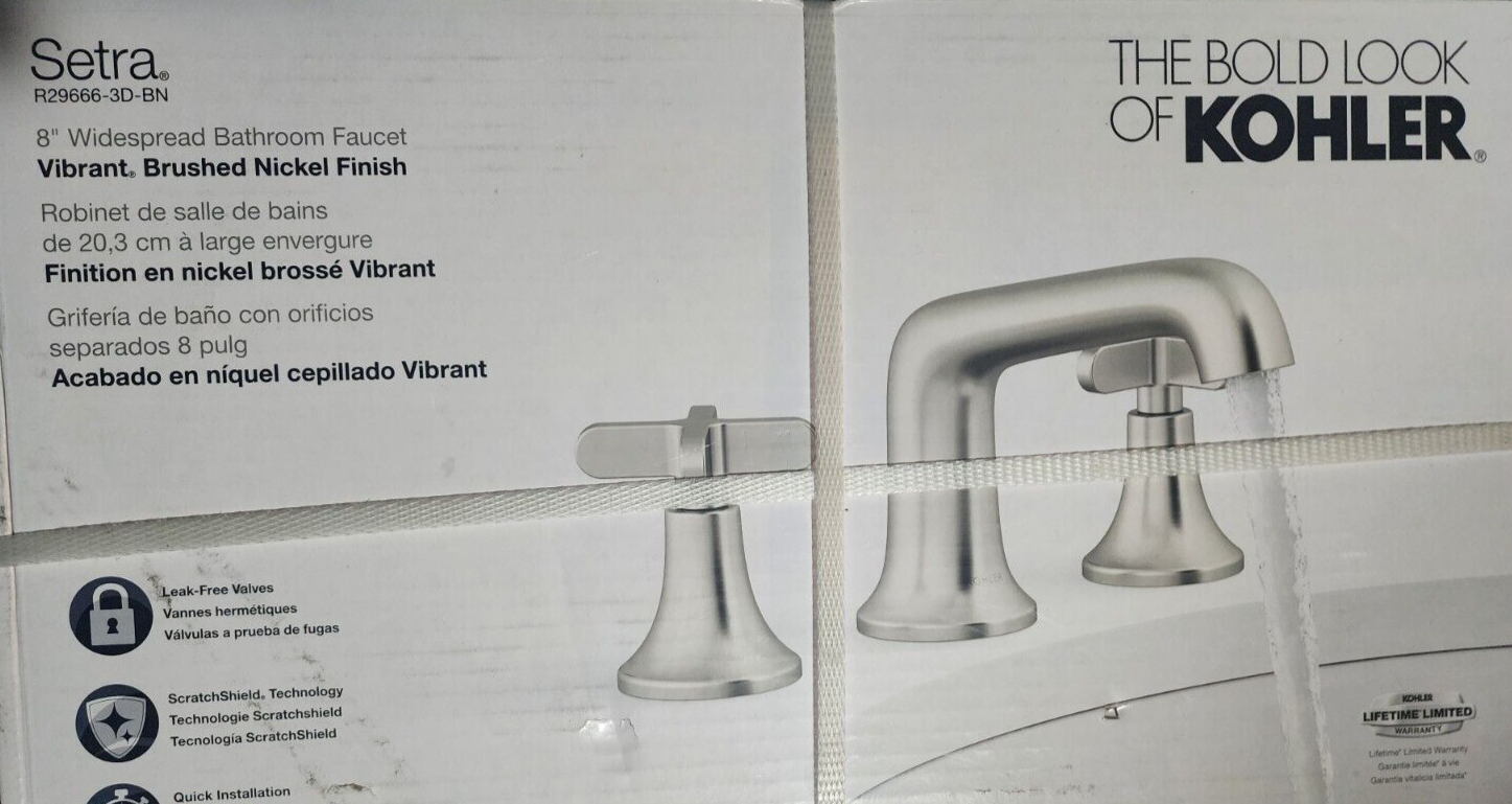 You are Buying a Brand New And Factory Sealed KOHLER Setra 8 in. Widespread 2-Handle Bathroom Faucet in Vibrant Brushed Nickel Model # K-R29666-3D-BN.... requires no special tools, Setra is easy to install. Partner your Setra bathroom sink faucet with other accessories in the Setra collection to create a stunning touch to your bathroom.