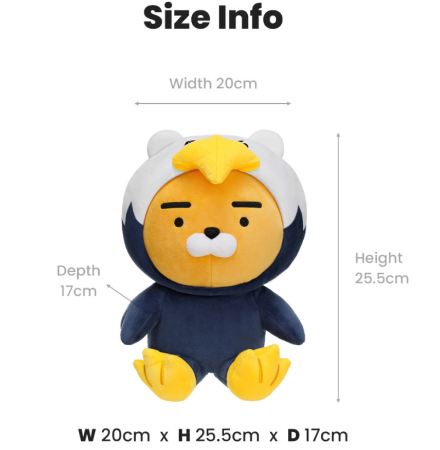 Main Features #8203; #8203; #8203; #8203; #8203; #8203; #8203; #8203; #8203; #8203; #8203; #8203; #8203; #8203; ---Brand : Kakao Friends ---Material : Polyester 100% ---Size : 20 (W) x 25.5 (H) x 17 (D) cm / 7.9" x 10" x 6.7" inches