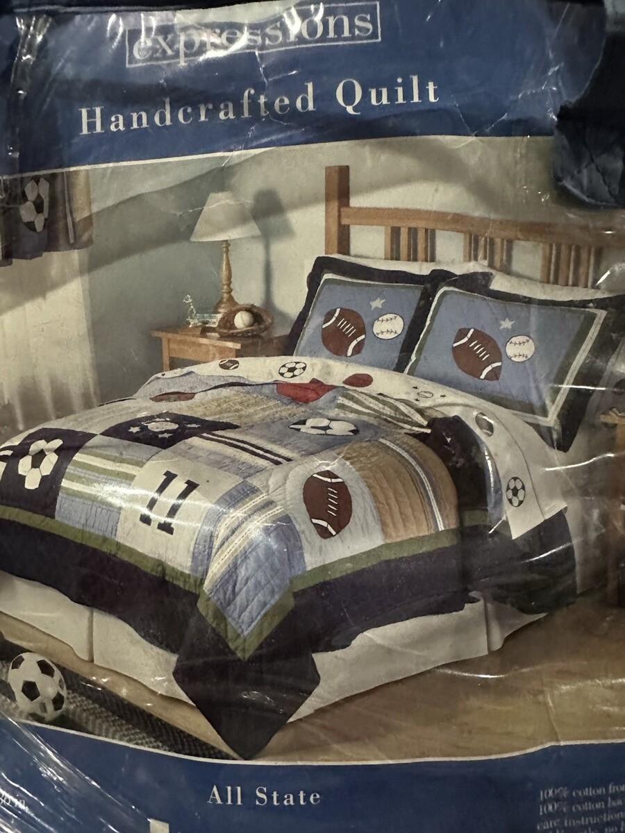 - Kids Expressions 2pc Twin Quilt/Sham All State Multicolor Handmade Brand New