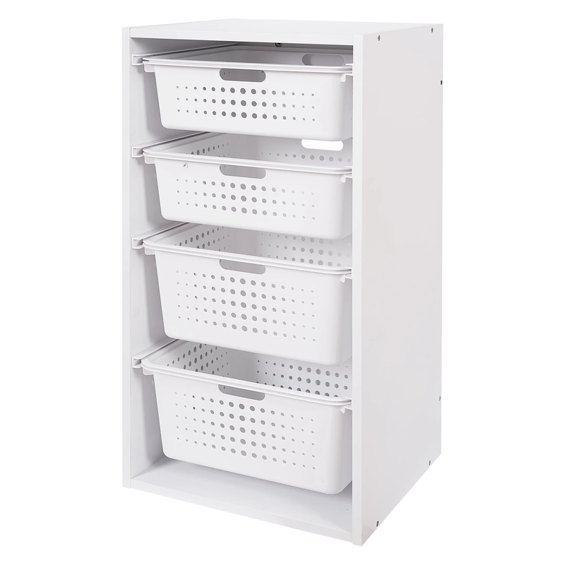 - Kids Sliding Bin Organizer with 4 Storage Bins, White, Age 3+