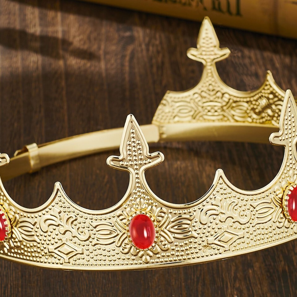 GOLDEN RUBY STYLE: Shimmering gold crown with red gemstone accents delivers a bold and majestic appearance that stands out in photos and performances.