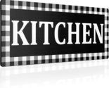 Kitchen Sign Buffalo Plaid Wooden Black and White Wall Decor 13.8 X 5.1 Inches Rustic Wall Sign Black and White Vintage Farmhouse Kitchen Decor for Home Pantry Dining Room Restaurant Coffee Shop