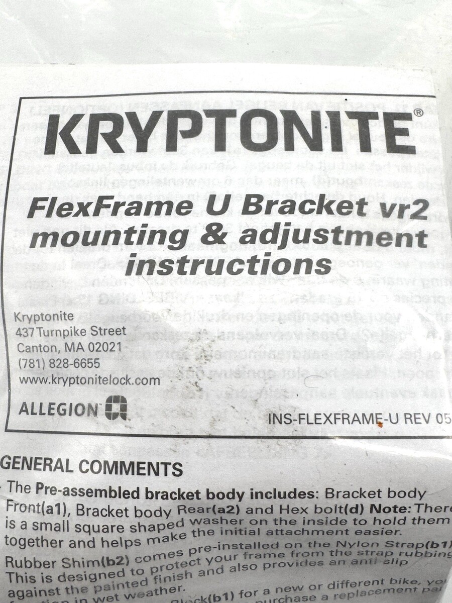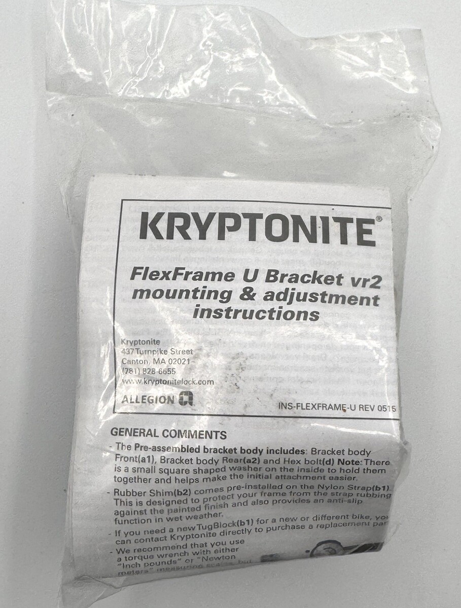 Kyptonite FlexFrame U Bracket vr2 Mounting Adjustment Comes with Instructions New in sealed package. The photos are useful for seeing condition and other details. Photos are of the actual item you will receive.
