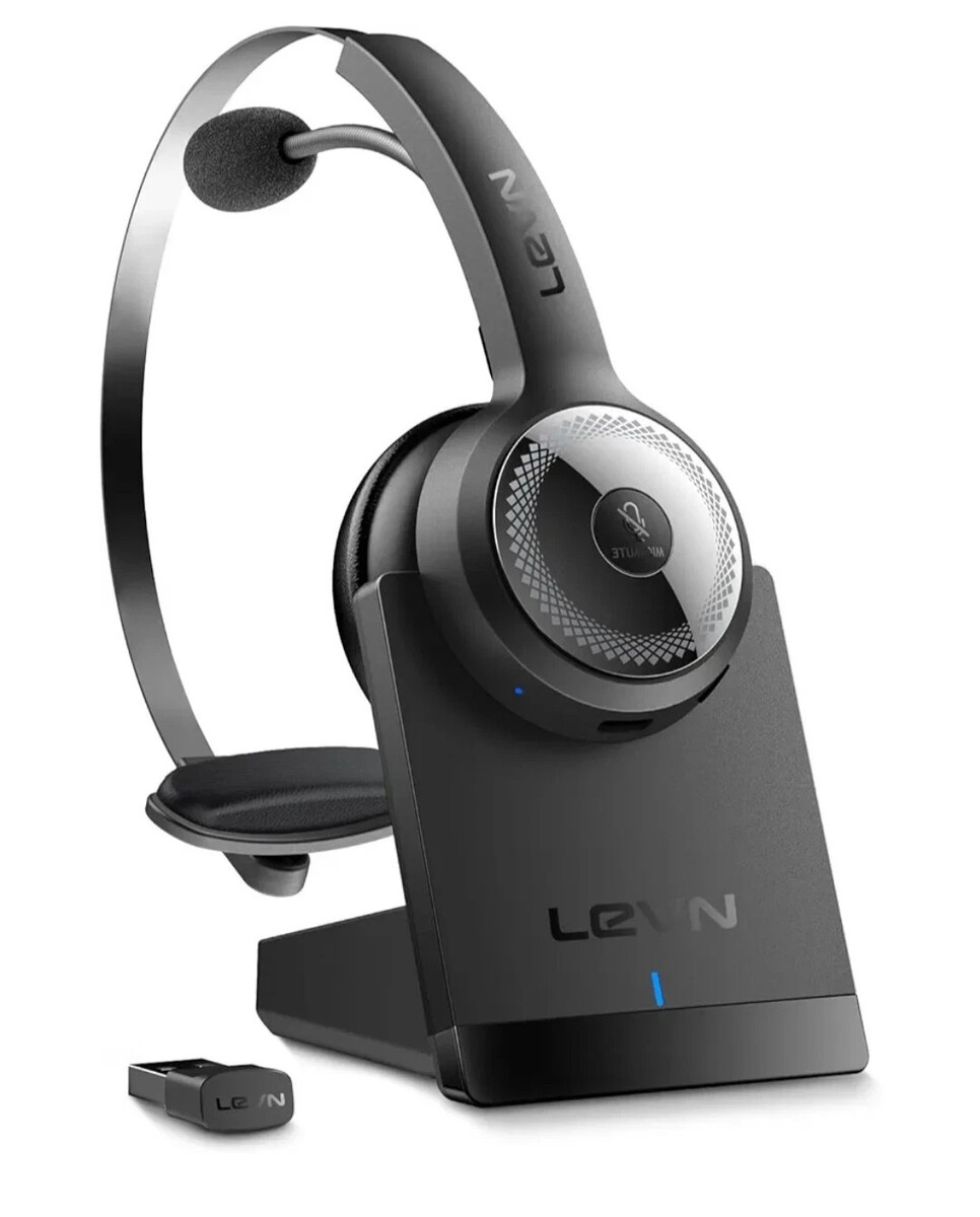 LEVN LEHS010 wireless headset with charging base and USB dongle. Great for calls meetings remote work and office use. Clear voice pickup with AI noise cancelling microphone. Long battery life and lightweight design for all day comfort. Features Bluetooth 5.2 Working range approx 15 meters Battery capacity 350mAh Charging time approx 2 hours Working time approx 35 hours at moderate volume Includes charging base Includes USB dongle Lightweight approx 79g Ships fast and packed carefully. Note: If you have any questions or if something isn?t quite right when your item arrives, please contact me through messages. Since I keep multiple units in stock, I can often send a replacement, missing part, or manual faster than going through the return process. Messaging me first is the quickest way to get help.