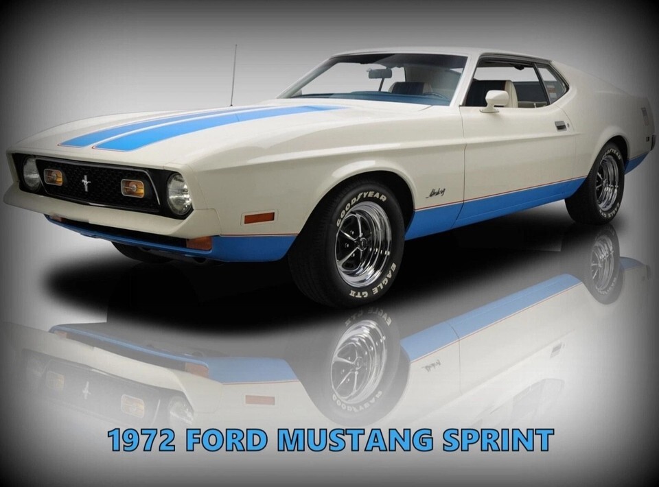 - LL 1972 Ford Mustang Sprint Metal Sign 8x12in USA STEEL Mancave Garage Car