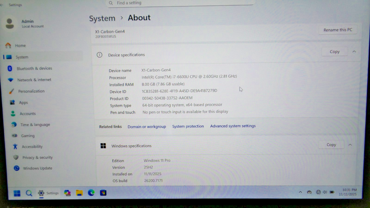 - Lenovo ThinkPad X1 Carbon 4th Gen | Core i7 | 8GB RAM | 256GB NVMe | Win 11 Pro