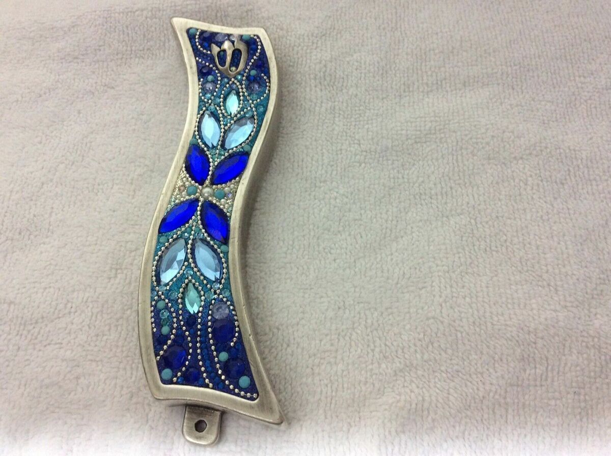 - Lenox Mezuzah Case Blue Brilliance Swarovski Crystals Orit Schatzman Israel NEW