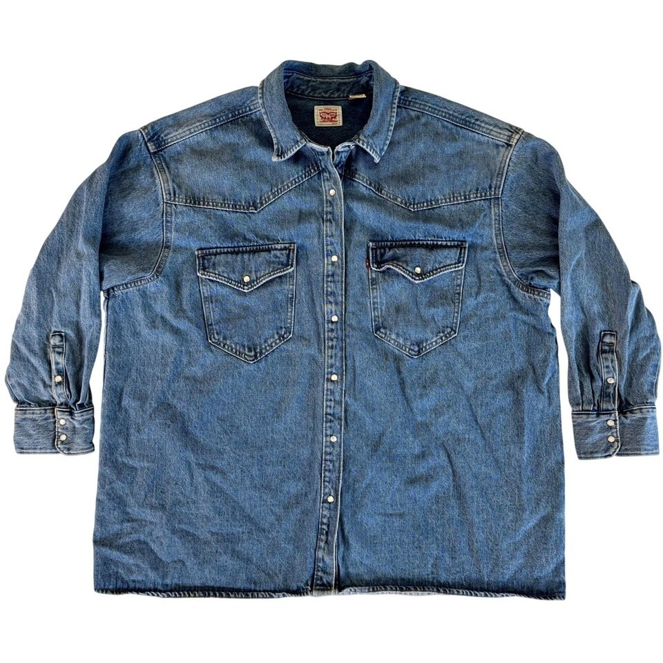 - Levi's Denim Western Snap Shirt Pearl Snaps Long Sleeve Blue Men's XXL