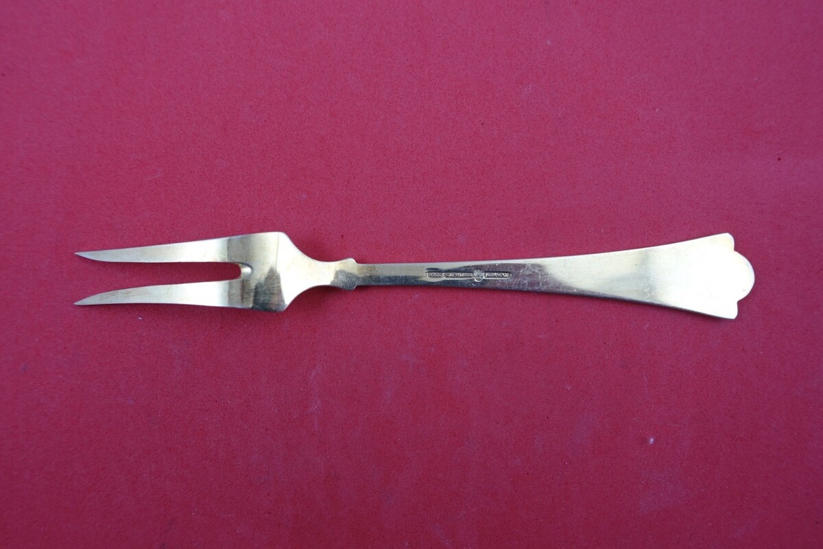 Silver 2-Tine Pickle Fork, vermeil enameled green, 5 3/8" in the pattern Anitra by Th. Olsens. It is not monogrammed and is in excellent condition.