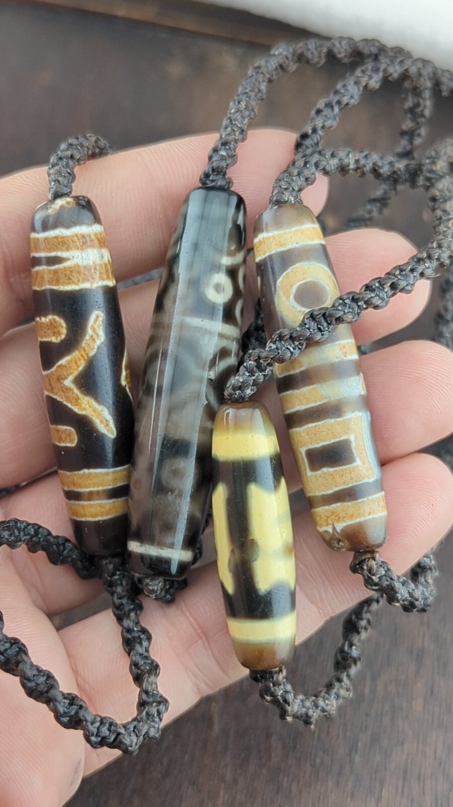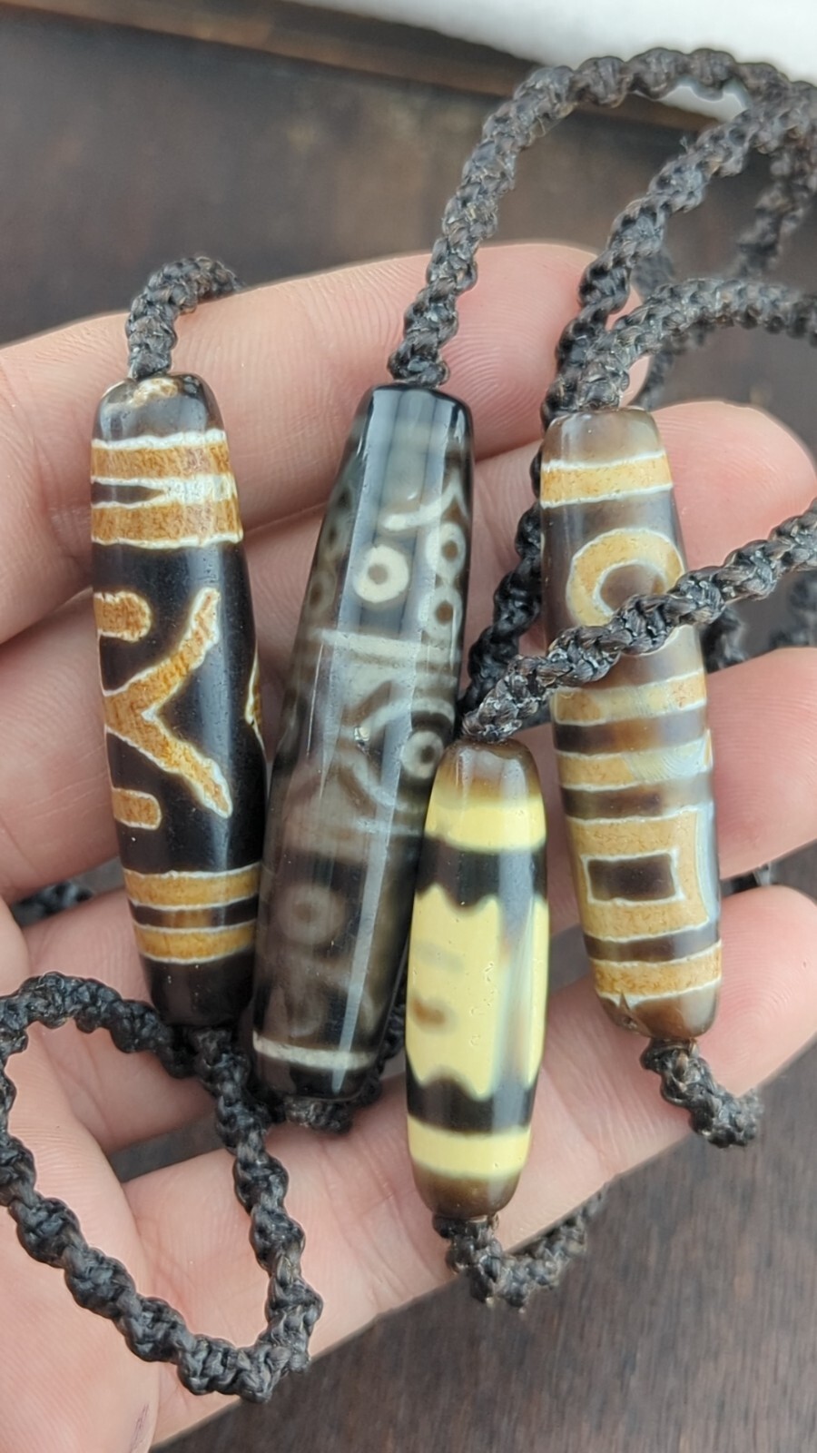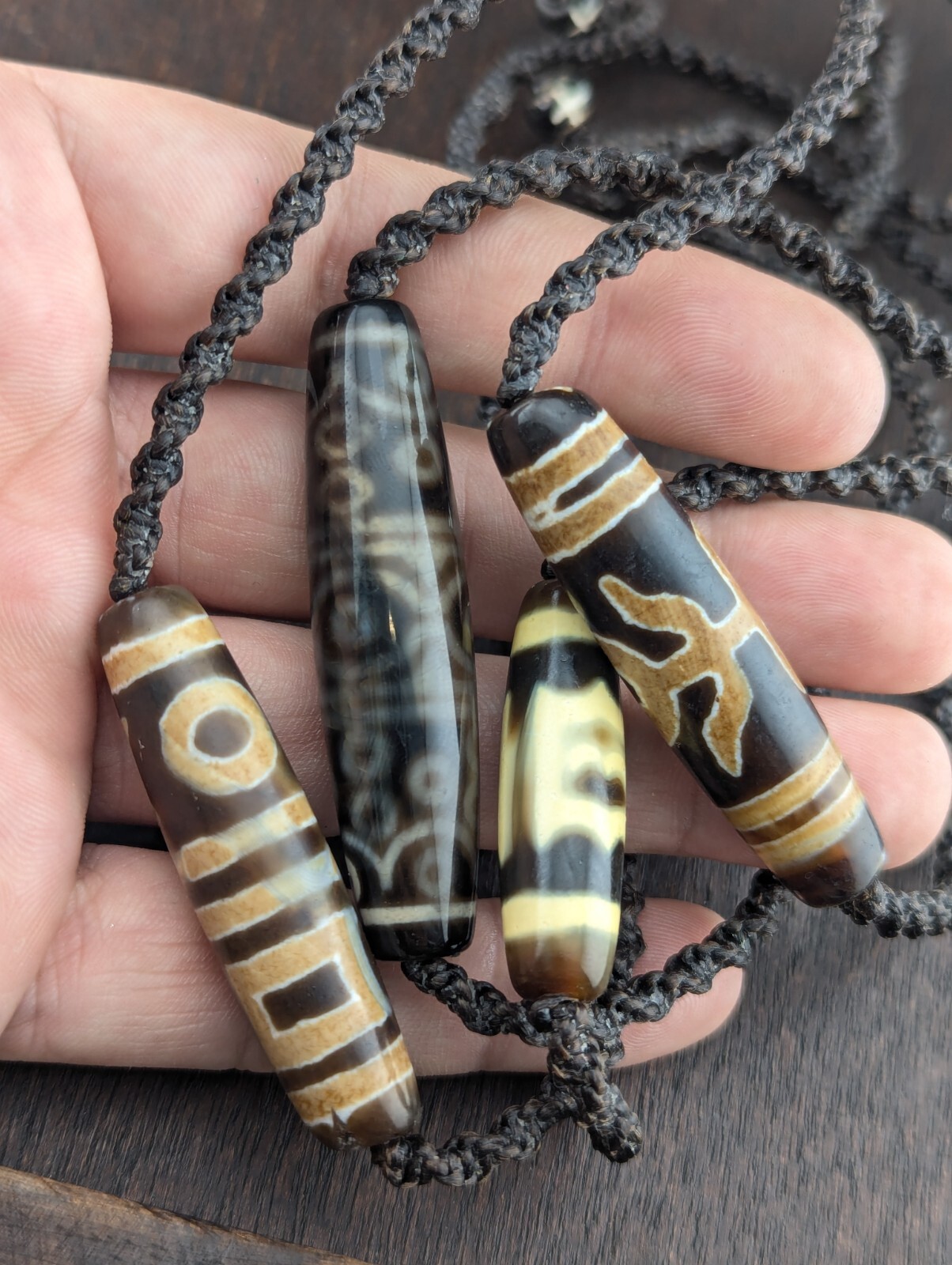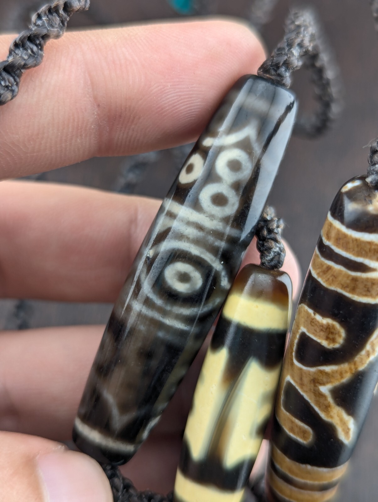 Il existe 5 types de totems dZi : 1) cercle, 2) carre, 3) diamant, 4) point, 5) abstrait.