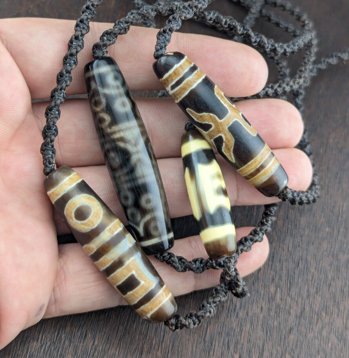 - Lot 4 anciennes amulettes vintage tibétaines très uniques motifs yeux...