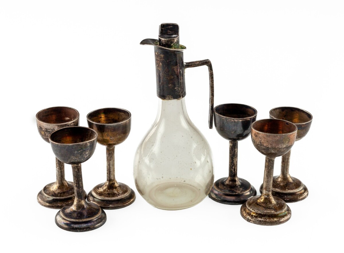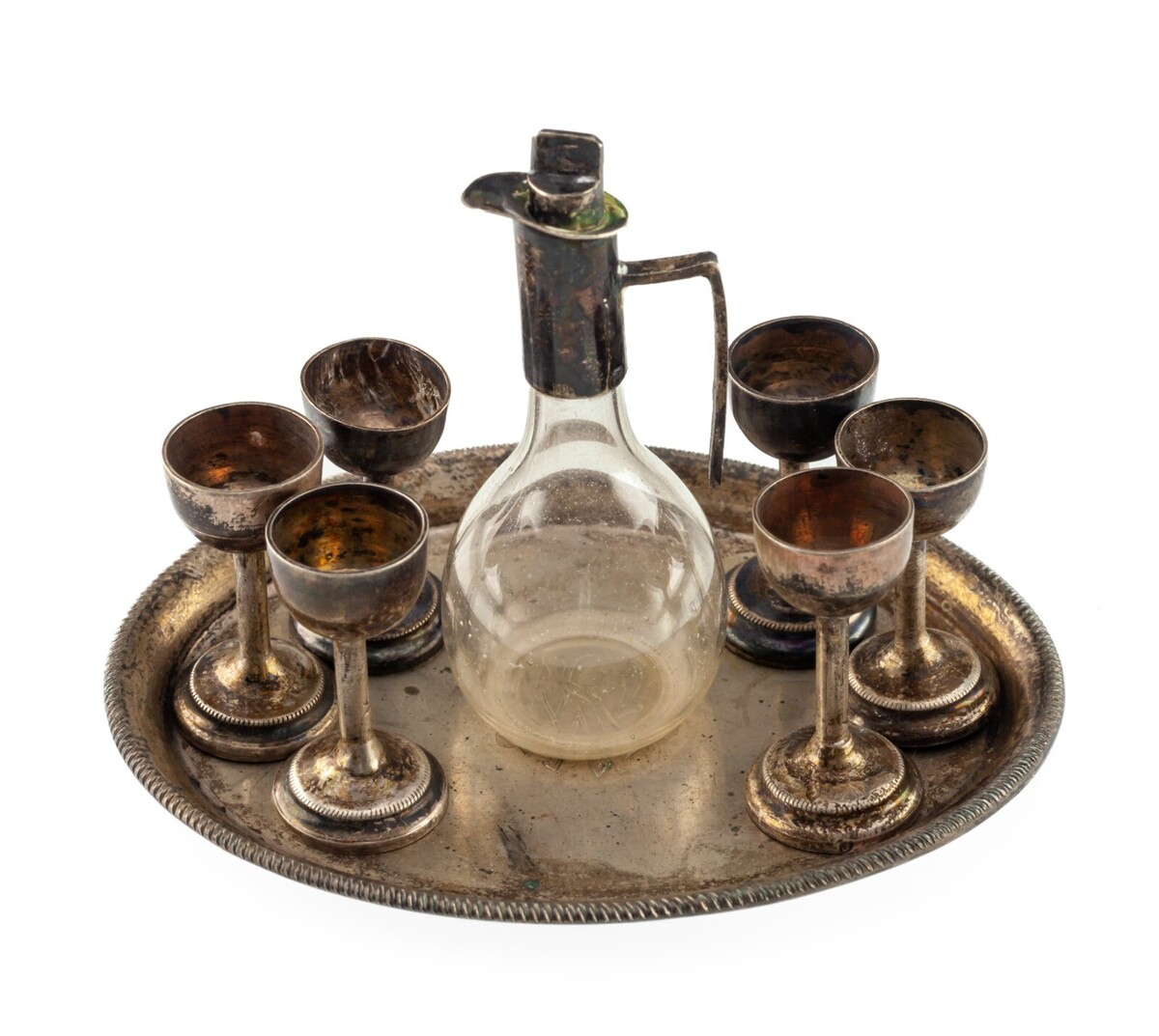 Lot de 2 ensembles de boissons en argent sterling pour maison de poupee antique 1:12 (the + vin)