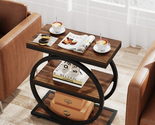 With a unique circular frame design in black, this small end table boasts three-tier shelves, each with a rich, dark wood finish complementing the modern aesthetic. The dimensions 25.59'' H X 11.81'' W X 23.62'' D make this living room side table suitable for fitting into various spaces next to sofas, chairs, or beds. This narrow end table is designed with three -tier sheleves, providing versatility for storing and displaying items of different sizes. Plus, the circular frame construction enhances the accent table's stability and capacity, which can hold up to 200 lbs