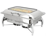 The sleek, modern design adds a touch of sophistication to any buffet or dining setup, enhancing your presentation while keeping food at optimal serving temperatures. The included lid helps to retain heat and moisture, while the viewing window at the top displays your spread and allows you to check on food without letting in outside air. The fuel holders ensure consistent heating, allowing you to focus on your guests rather than your food.