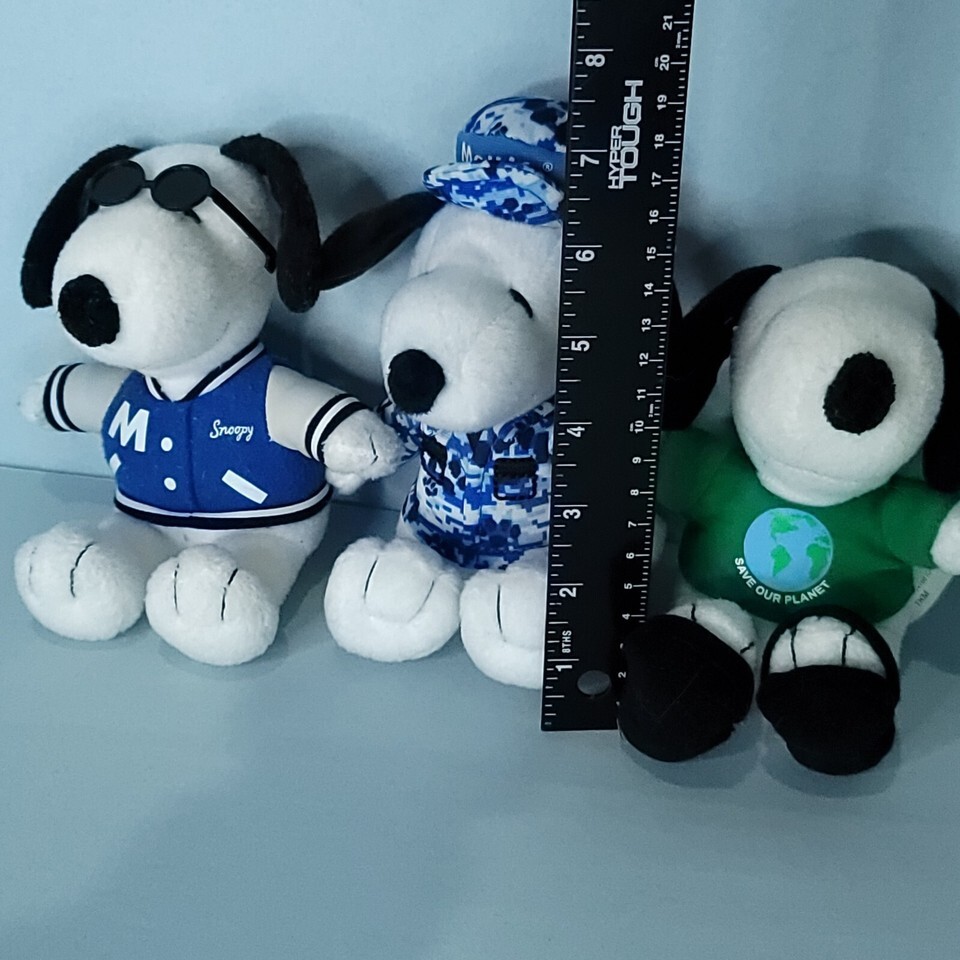 - MetLife Peanuts Snoopy Charlie Brown Dog Plush Lot Of 3 Painter Save Planet Cool