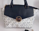 Primary image for Michael Kors Hudson Large Navy & White Signature Satchel Purse Bag READ