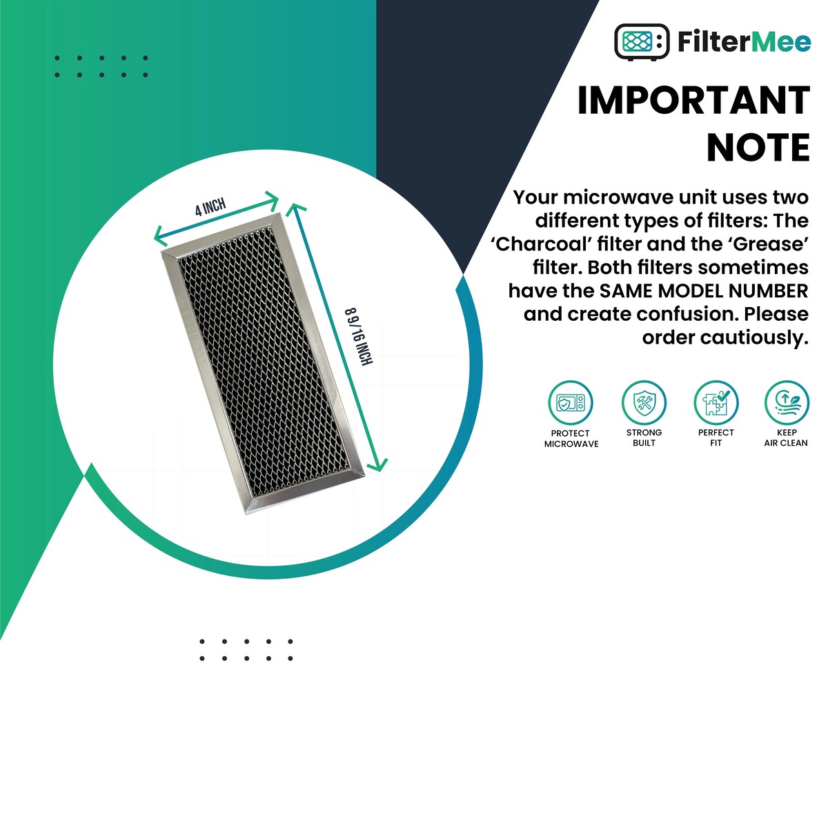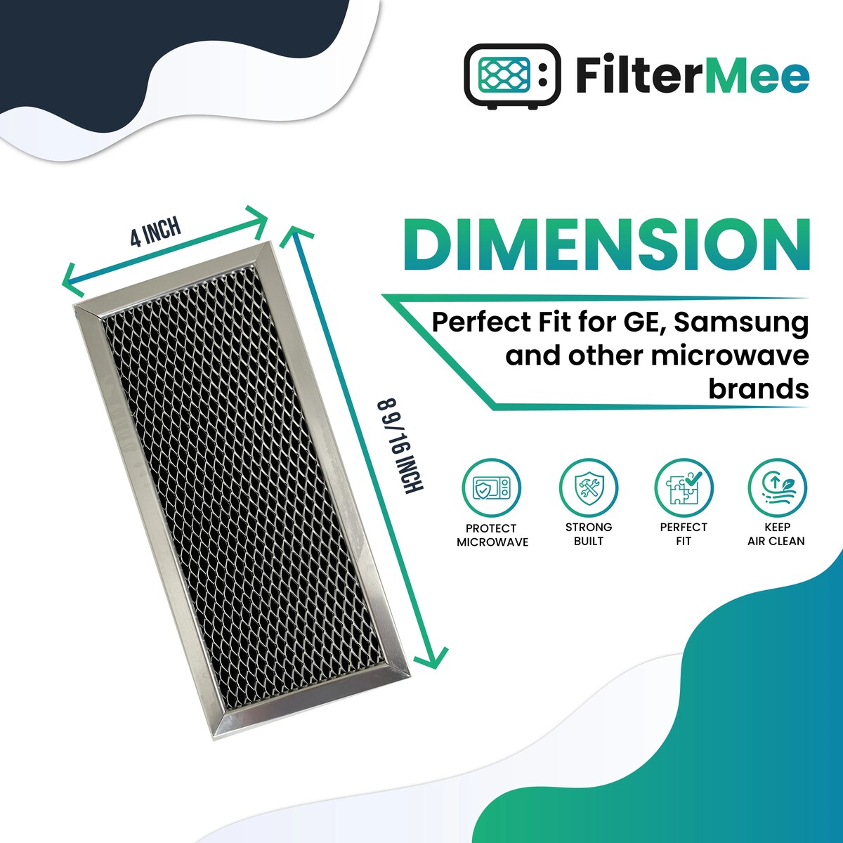 Note: Samsung Microwave uses two types of filters with the same model number. Charcoal filter (4 x 8 9/16 inch) and Grease filter (5 7/8 x 13 3/8 or 6 3/8 x 6 7/8 inchโ). Please ensure that you order the correct filter.
